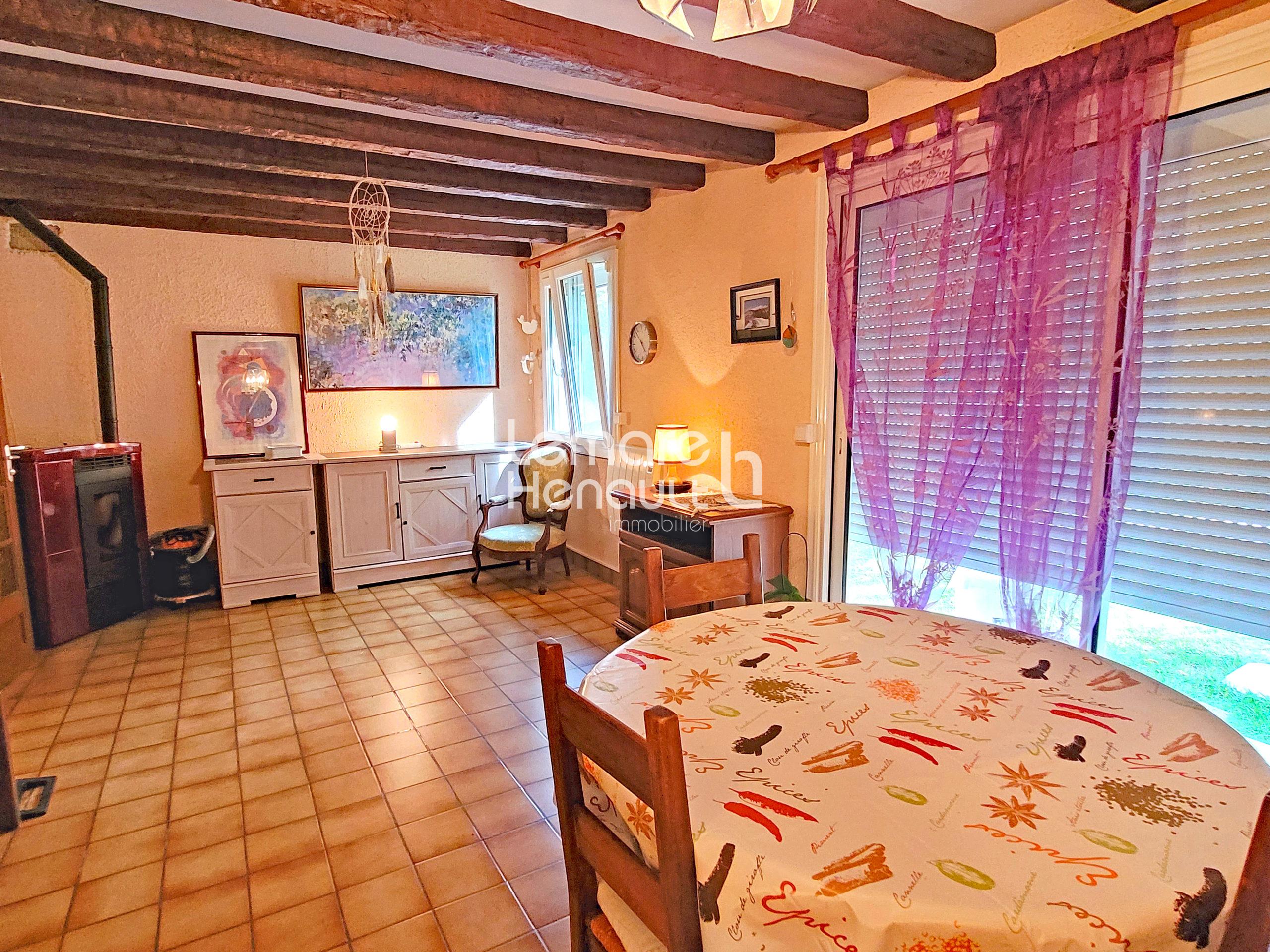 Entrée, cuisine aménagée, séjour-salon avec poêle à granulés, 2 chambres, bureau, salle d’eau-douche, wc.
